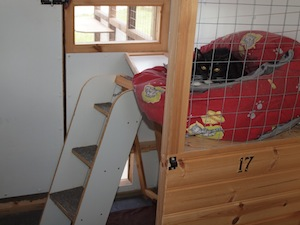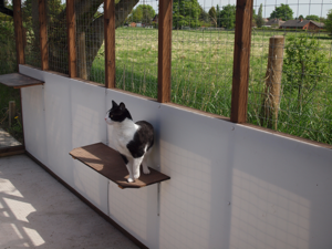Each unit has a spacious, light indoor area for eating and sleeping with access to an outdoor covered run so your cat can snooze the day away on one of the shelves or watch the wildlife in the surrounding open countryside. Special consideration and facilities are provided for the more mature cats. I will administer prescribed medication free of charge including injections for diabetic cats. Your cat(s) current up to date vaccination certificate must be produced on arrival. Payment by cash or cheque, no facilities for card payment.